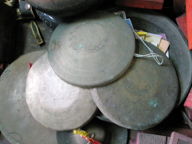 Authentique gong chinois en bronze, autrefois utilisé dans les processions et les cérémonies religieuses. Le support n’est pas inclus.