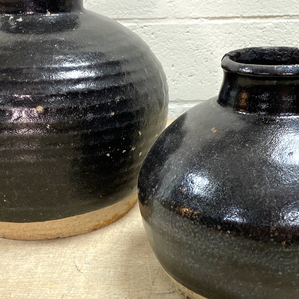 Pot antique à ventre rond, émaillé rouge-brun, col étroit et petite ouverture. Qualité lourde et solide. Ces pots étaient autrefois utilisés dans la cuisine et même dans les apothicaireries pour conserver le vin.