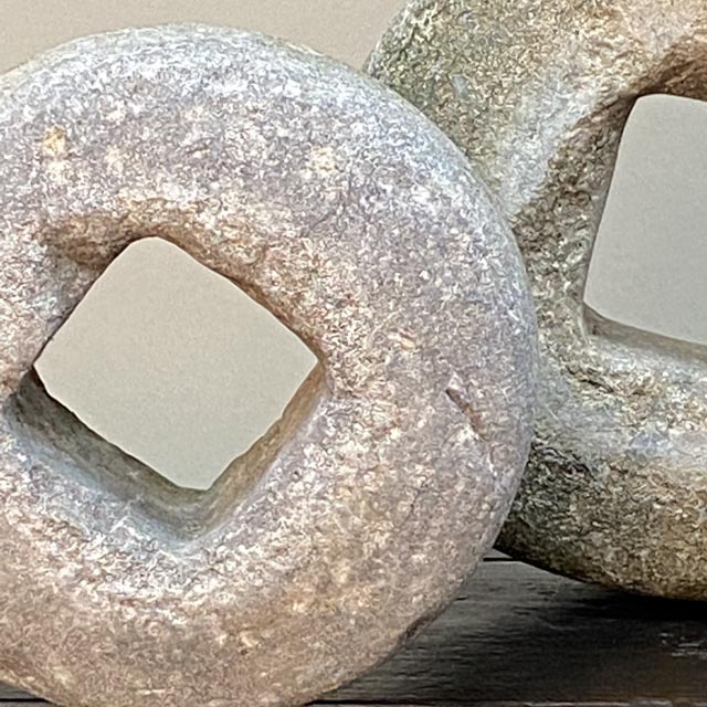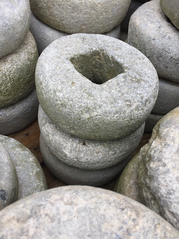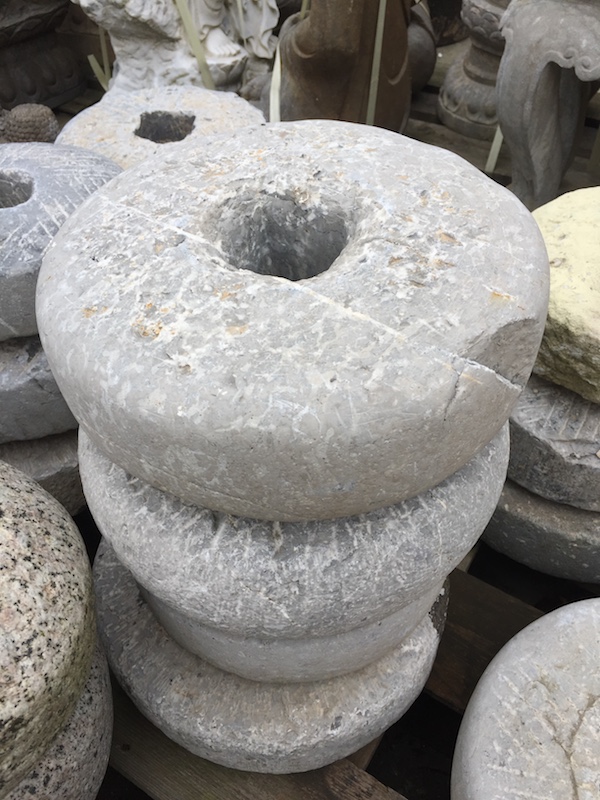 Kleine/middelgrote stenen rollen, ronde molenstenen wielen. Deze maakten deel uit van een rijst- of meelmolen die vooral op het platteland werd gebruikt.